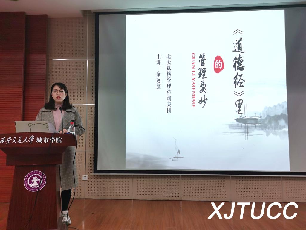 为了增强学生对中华优秀传统文化的理解,领悟潜藏于《道德经》之中的管理方法论。yl7703永利官网管理系于4月15日晚在F100报告厅举办管理大讲堂——《道德经》里的管理要妙。参加此次讲座的有北大纵横管理咨询集团余远航先生、管理系副主任解茹玉及管理系师生代表。本次讲座由管理系副主任解茹玉主持。