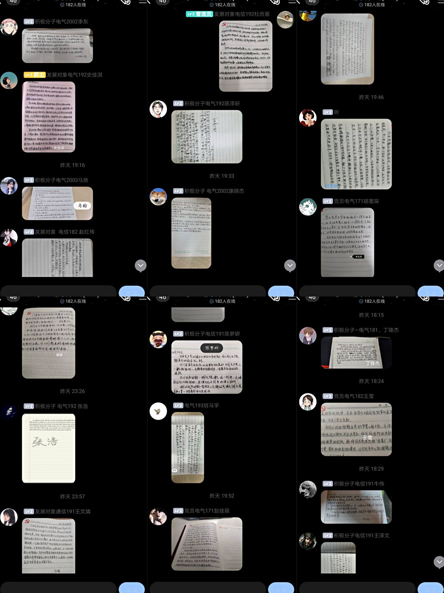 本次活动以建立读书角打卡群为主要形式开展,首先由学生党员每天坚持四史读书学习,并每日摘抄笔记在“红色读书角”群内进行打卡,在学生党员的带领下,吸引了大量学生积极参加。其次,由电信系学生党支部负责每两周定时开展一次读书分享会,旨在大家通过分享各自的学习心得,做到有所思,有所悟。本次读书分享引导同学们了解党团结带领人民为中华民族作出的伟大贡献,提升了大家的爱国情怀,让同学们清晰了自己肩负的责任和使命。