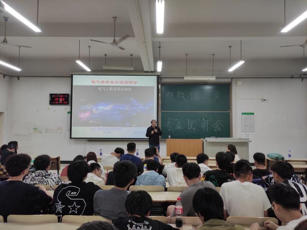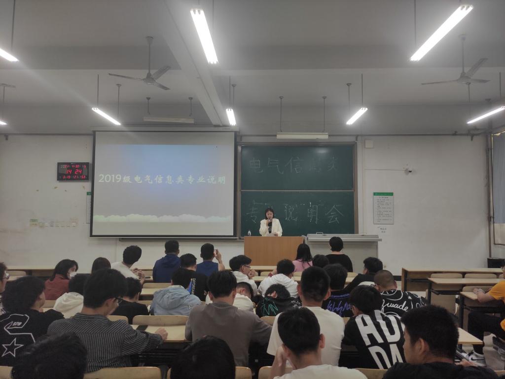 yl7703永利官网电气与信息工程系于4月30日下午在教学楼E100召开电气信息类专业说明会,邀请电气工程及其自动化专业首席教授李守智和自动化专业副教授郭华,参加本次活动的有电气类专业19级全体学生,本次说明会由电信系辅导员张华主持。