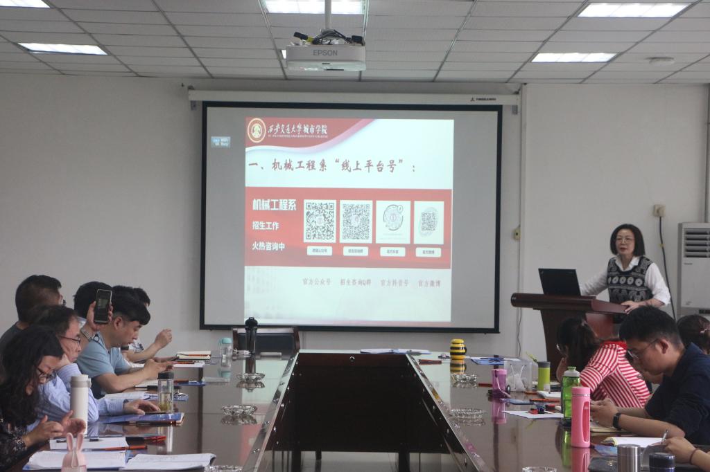 机械系办公室主任李华从五个方面对招生工作总体方案进行梳理:一是全员关注机械工程系“线上平台号”;二是全员熟悉机械工程系官方“微信公众号”各版块涵盖内容;三是全员推广机械工程系招生宣传海报及电子宣传资料;四是罗列招生咨询常见问题供在座师生学习;五是对线上+线下招生推广渠道方式进行细致讲解,希望在座师生同心协力,圆满完成2021招生工作。
