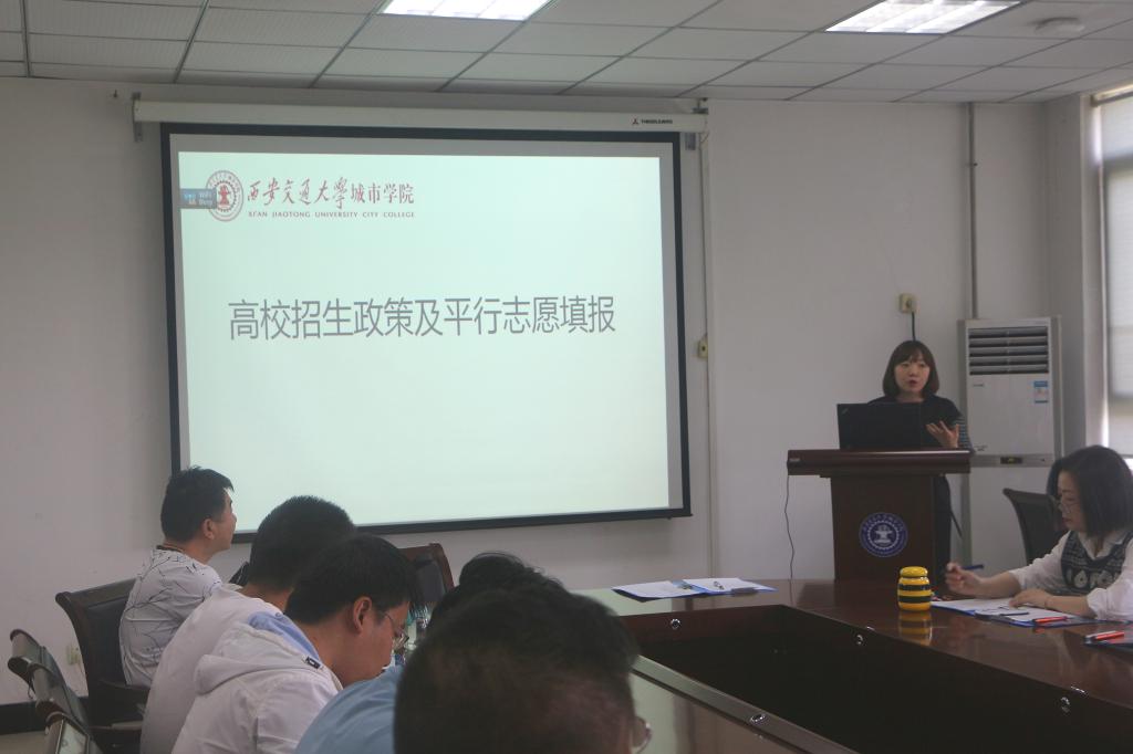 招生办公室祝贺通过高考招生政策、平行志愿填报两个方面进行介绍,详细解读了国家、省级以及学院招生政策,讲解了录取批次变化,录取计划分布与报考原则,着重讲述了平行志愿填报方法及投档规则,并从学院招生宣传要点、招生范例、招生咨询等方面向在座师生分享了招生宣传经验。