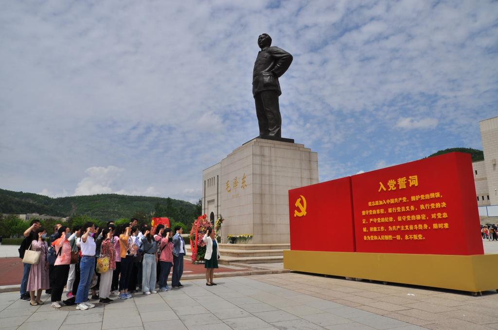 外语系全体人员到达延安后,就来到了全国爱国主义教育示范基地延安革命纪念馆。在纪念馆前,支部书记徐素云同志领誓,全体党员举起右手庄严宣誓,重温了入党宣誓时的庄严誓词。在讲解员的带领下,参观了延安革命纪念馆展出的珍贵革命文物、文献和照片,把全体党员带入到了延安时代那令人难忘的火红岁月,接受了革命精神的洗礼,进行了爱国主义、革命传统和延安精神教育。随后,来到杨家岭革命旧址,这里是中共中央领导在1938年11月至1947年3月期间的住处。当年这里还曾进行过轰轰烈烈的大生产运动,召开过第七次全国代表大会及文艺座谈会。在这个老一辈革命家曾经奋斗过的地方,大家聆听红色故事,感受革命精神。最后,参观中央书记处旧址—枣园,看着窑洞里简朴的陈设,听着老一辈无产阶级革命家带领全国军民取得的丰功伟绩,深切感受到了老一辈革命家勤俭节约、无私奉献的高尚情操,以及严以律己、一身正气的革命风范。