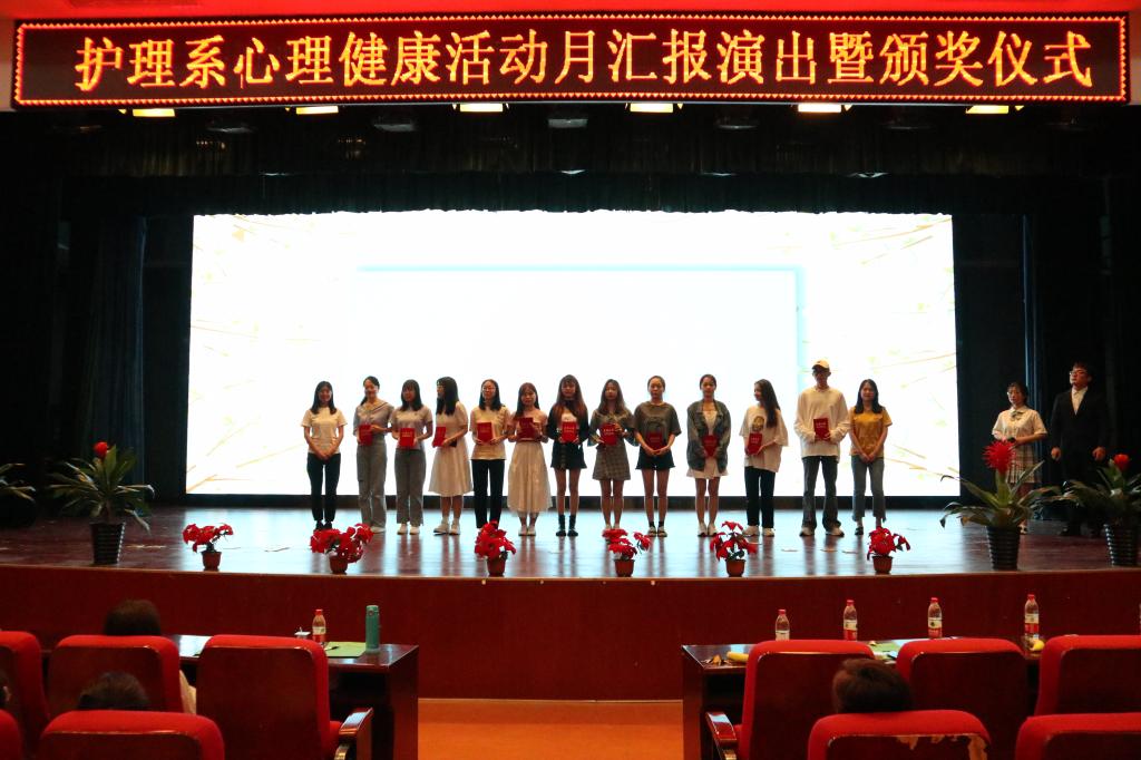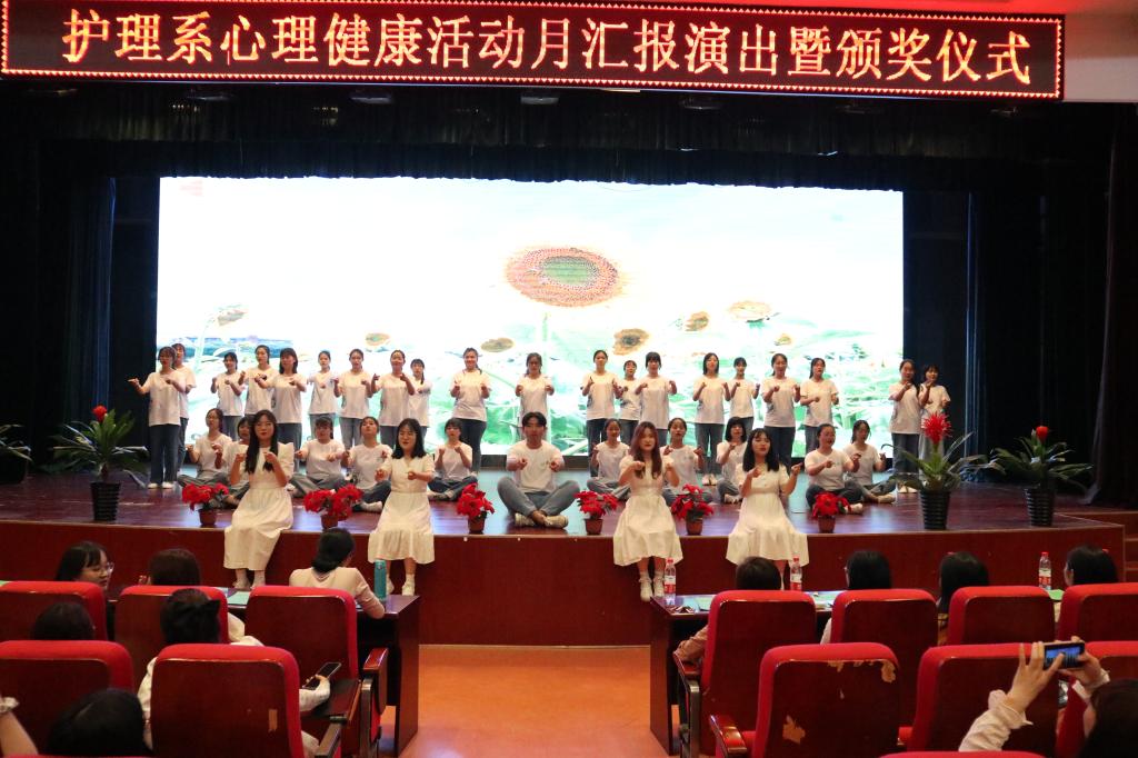 为提升大学生心理健康素质,促进大学生身心健康和谐,yl7703永利官网护理系于5月24日晚在教二报告厅开展心理健康活动月汇报演出暨颁奖仪式。出席本次的嘉宾有学生服务中心学生教育主管姚敏,管理系团工委书记黎杨,外语系团工委书记刘牧原,艺术系团工委书记兼心育专员杨梦圆,传播系心育专员任瑾,经济系心育专员张进,经济系辅导员汪洋及护理系全体辅导员和在校生。