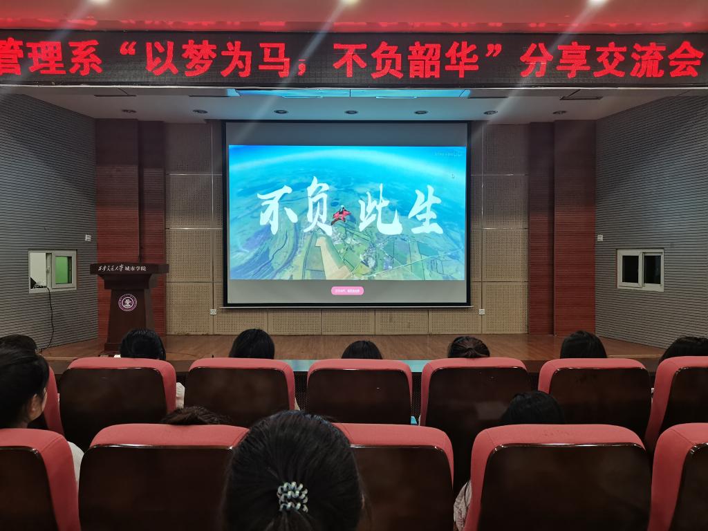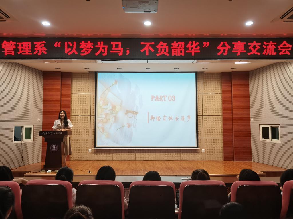 为了增强同学们的成长自信心,激发同学们的追梦情怀,yl7703永利官网管理系于5月25日晚在F100报告厅举办“身边的榜样(第六讲)——以梦为马,不负韶华”分享交流会。出席本次分享会的有主题分享者丁娅楠、杨家兴、杨逸尘、郝梓含及管理系2020级全体学生。本次分享会由管理系社团工作部李柯瑶主持。