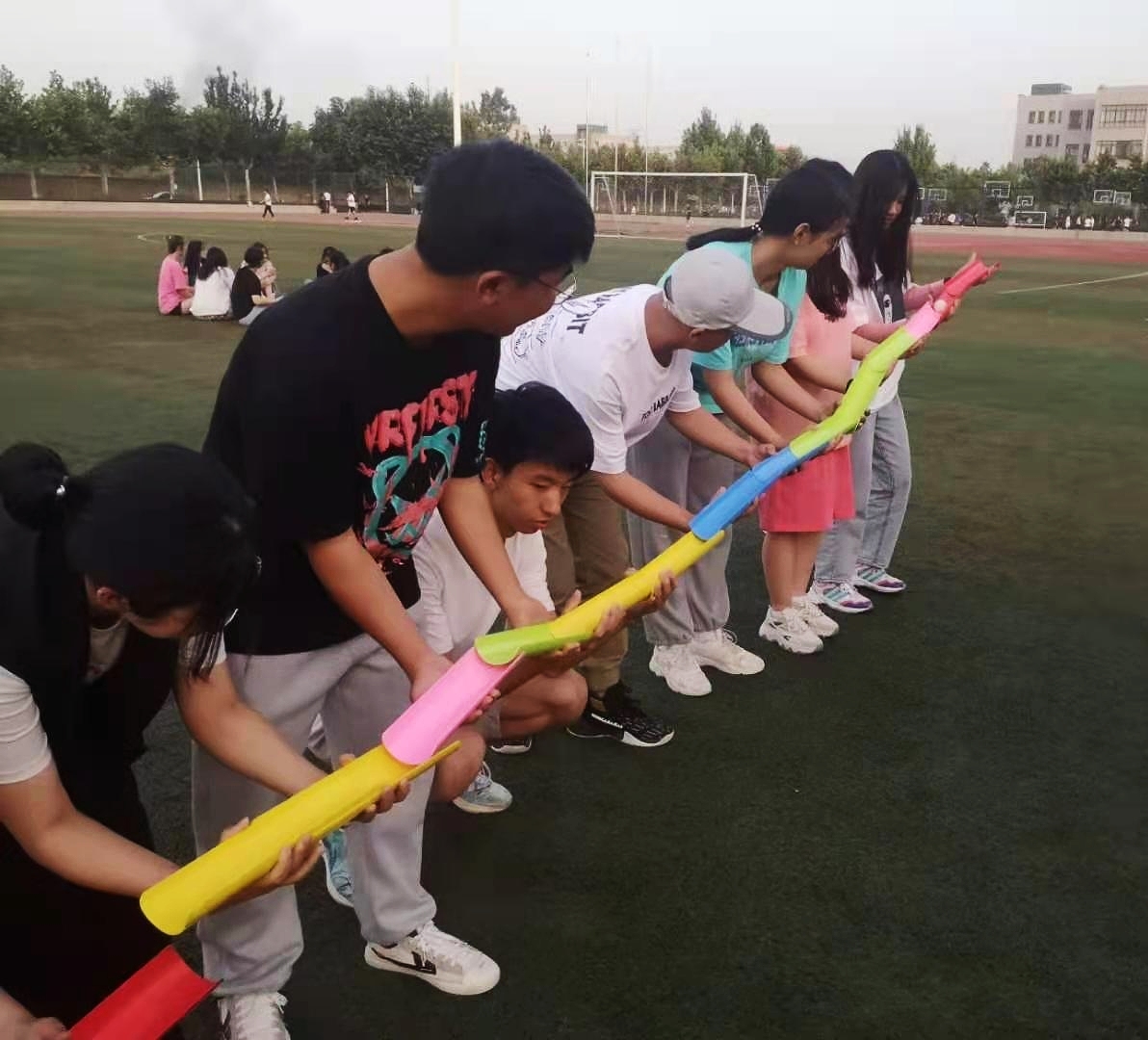 为培养大学生团结合作意识,塑造阳光乐观心态,5月28日,西安交大城市学院学生服务中心在田径场举行心理趣味素质拓展活动。本次活动由学生服务中心心理健康教师陈志敏指导,心理协会承办,来自不同系别的学生自主报名参与。