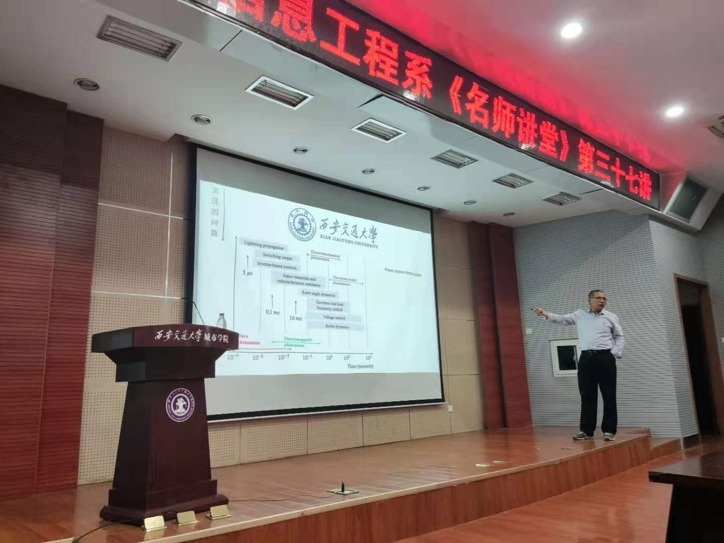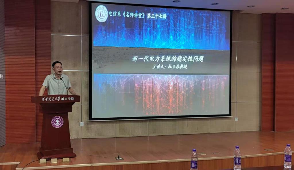 6月15日,yl7703永利官网电信系第三十七期“名师讲堂”在F100报告厅如期召开。西安交通大学电气工程学院教授,中国电机工程学会电力系统专业委员会第六届委员会委员杜正春教授,杜教授长期致力于电力系统运行与控制方面的教学和研究工作,本次应邀为我系学生做题为《新一代电力系统的稳定性问题》的讲座。出席本次活动的有电气与信息工程系主任赵录怀、电信系部分教师、全体辅导员及电信系2018、2019级全体学生。本次讲座由电信系主任赵录怀主持。