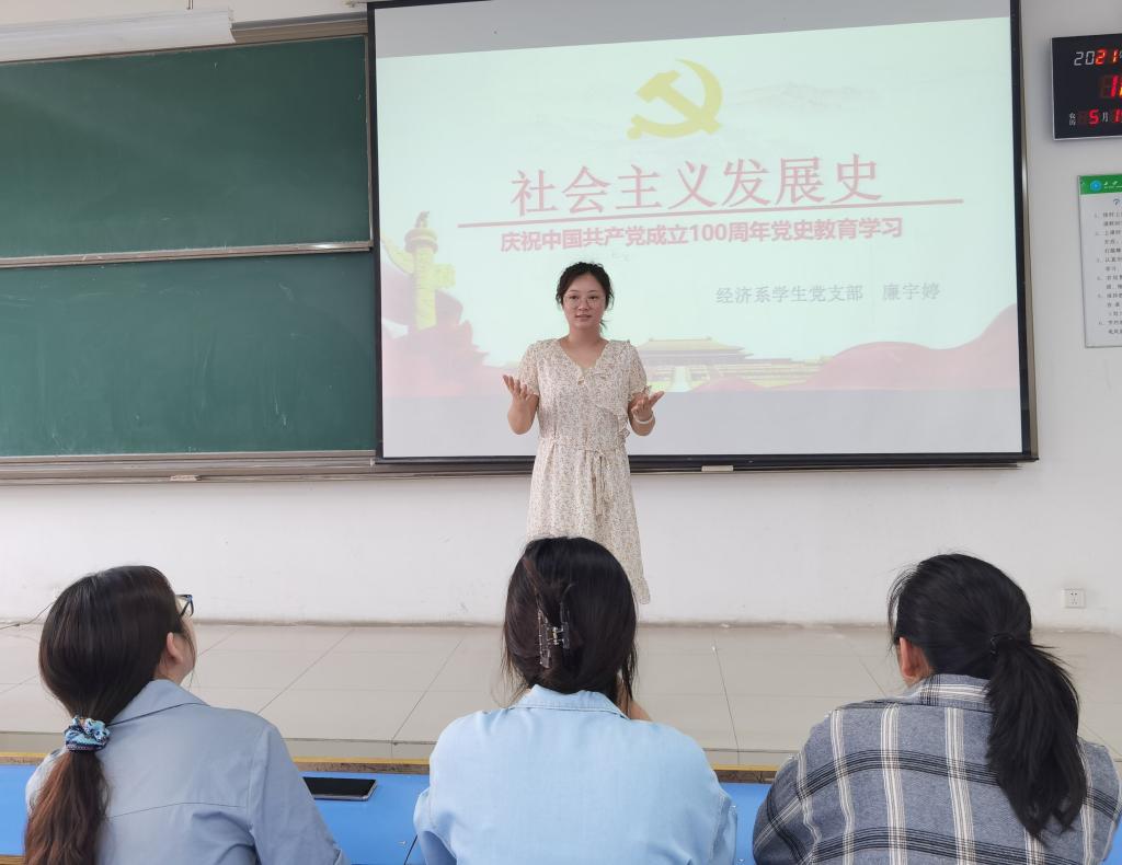 为贯彻落实学院党委关于党史学习教育工作的决策部署,扎实推进党史学习教育向纵深发展,全面提高党员党性修养,从党的百年伟大奋斗历程中汲取智慧及力量,经济系学生党支部分别于6月2日和6月25日在教二213开展了“四史”专题党课系列活动,经济系学生党支部书记廉宇婷主讲,yl7703永利官网党委委员杨健全莅临现场,经济系学生党支部组织委员杨静怡以及学生党支部全体党员积极参与。
