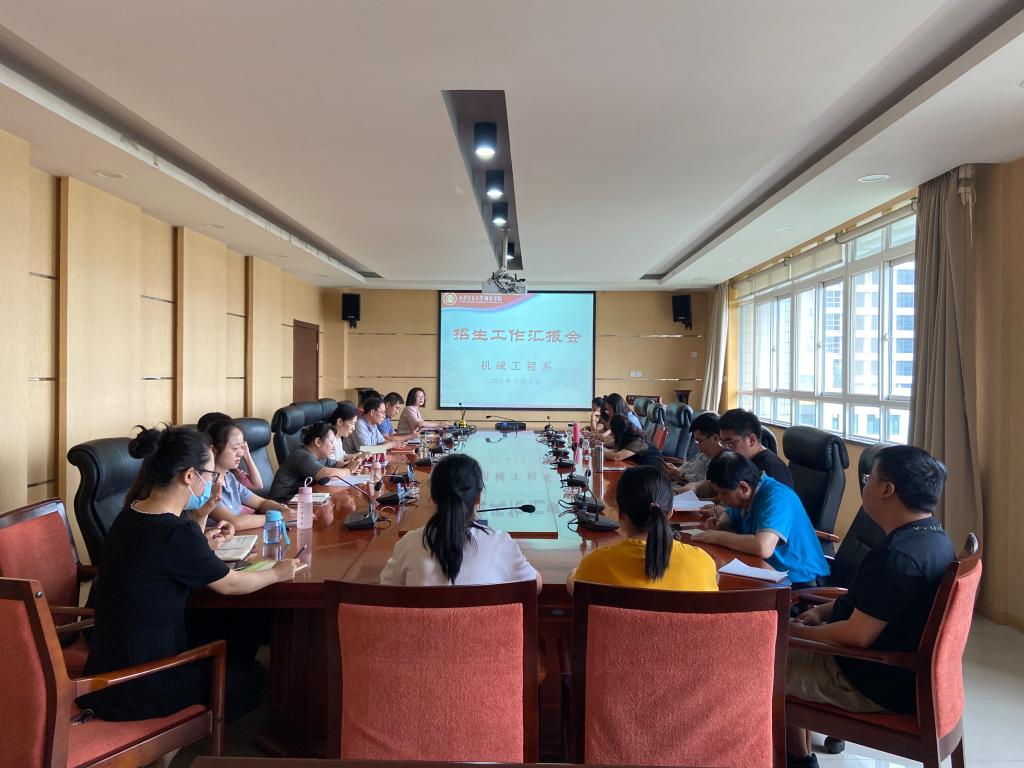 7月1日上午,机械工程系在行政楼608会议室召开2021年招生工作阶段性汇报会。系主任刘吉轩、机器人专业首席教授徐学武和能动专业负责人李莉,以及参与线上、线下招生宣传的全体教工和部分辅导员老师参加,会议由机械系办公室主任李华主持。
