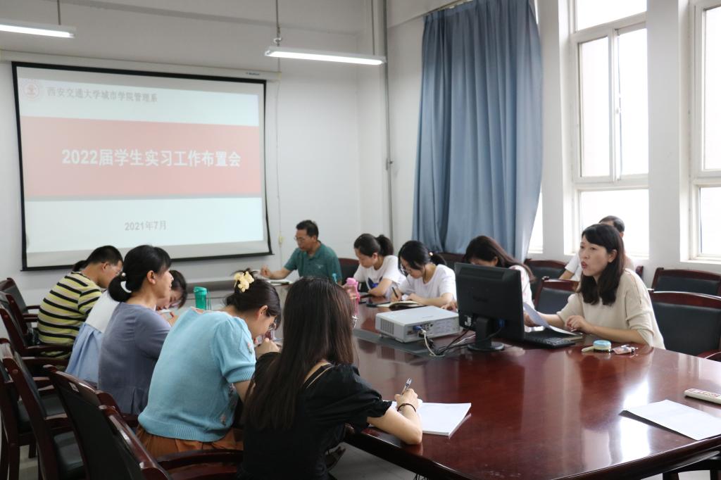 7月1日中午管理系2022届学生暑期实习工作布置会在教2—225会议室召开,出席本次会议的有管理系副主任解茹玉、学生工作主管刘健、负责2018级本科及2020级专升本的辅导员和班主任老师。