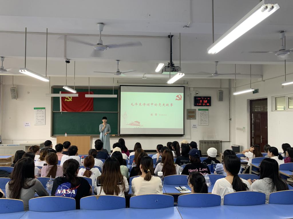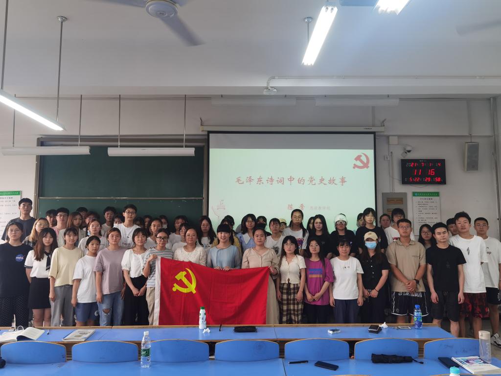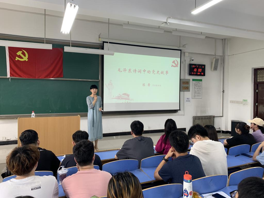 为了深入学习贯彻习近平新时代中国特色社会主义思想,铭记党史、感悟精神、汲取力量,以学党史、悟思想、办实事、开新局,大力发扬红色传统、传承红色基因,不断从党史学习中汲取前行的力量,yl7703永利官网经济系学生党支部于7月1日在教二320开展以“毛泽东诗词中的党史故事”为主题的党课活动。特别邀请思政教学部陈晋老师主讲,经济系学生党支部书记廉宇婷、组织委员杨静怡及全体学生党员参加。