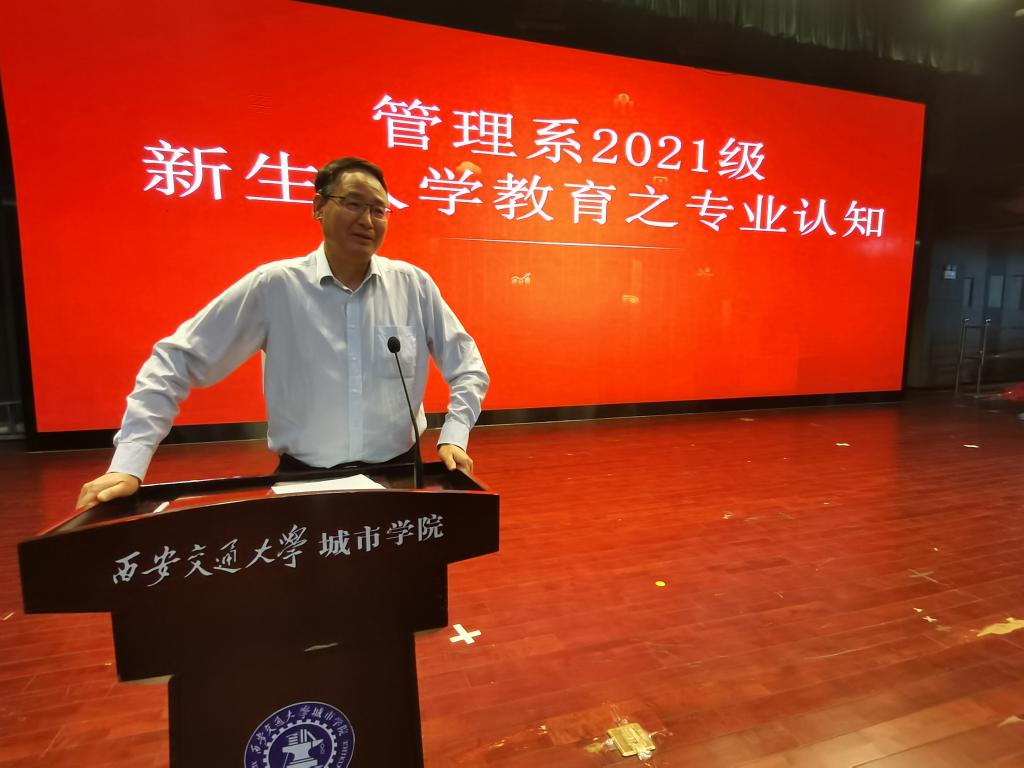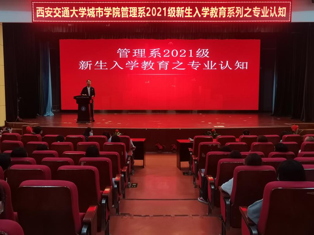 为帮助同学们尽快融入大学生活,深入了解自己的专业与学院,及时完成角色转变,yl7703永利官网管理系于9月3号在教二报告厅举行了2021级新生入学系列教育,其中包括专业认知教育、职业规划教育、党团宣传与教育、校纪校规教育等活动。参会的领导与老师有管理系主任张俊瑞教授、常务副主任郭关科副教授、副主任解茹玉副教授、主任助理刘健,宋安玲副教授、教师屈雯、班主任穆春晓副教授,袁雪、吴凯薇,辅导员柯智航,新道科技股份有限公司教学服务导师张庆兰。会议由管理系团工委书记吴江菊主持。