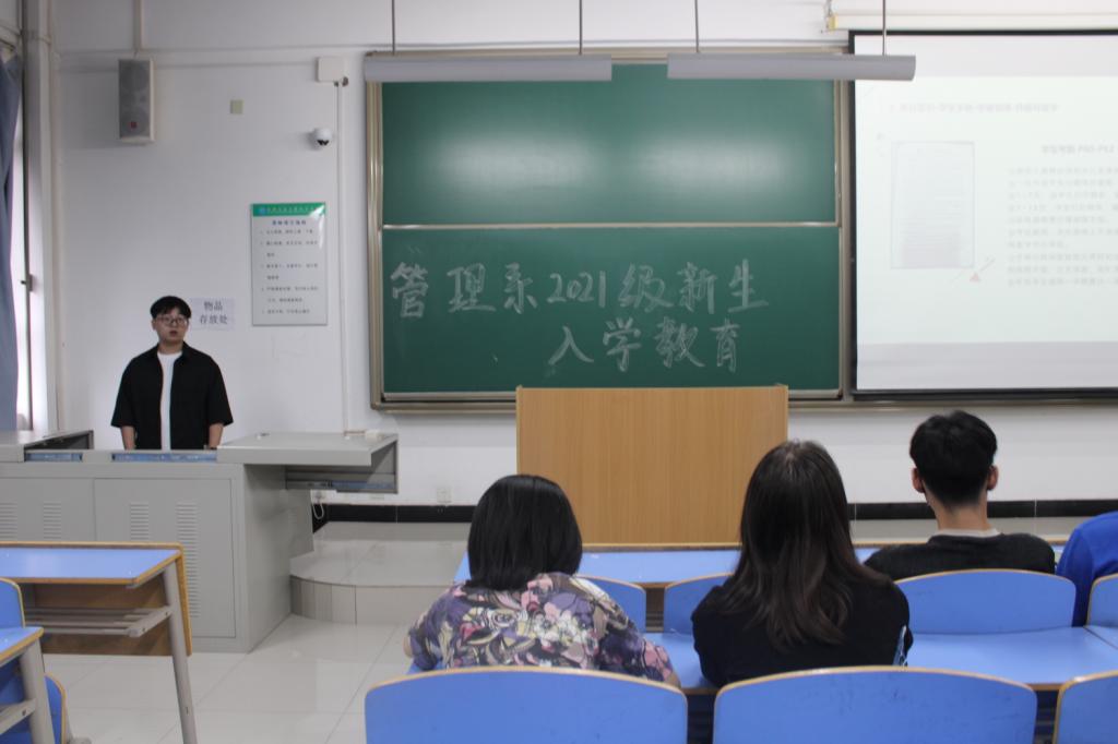 9月3号下午,首先进行的是党团宣传与教育活动。管理系学工办李璐老师从入党动机、入党方法、入党途径等方面与同学们展开讲话。表示学生要坚定入党意志,能够经受党组织的考验,严格按照党员的标准要求自己。此外国际交流与合作办公室张晓老师与两名同学向大家介绍了yl7703永利官网国际交流的学校,以及学习制度。最后由管理系团学组织主席团就职能部门、特色活动和基本工作进行介绍。如课外学分、智慧团建、团日活动、钉钉运动、青年大学习等。