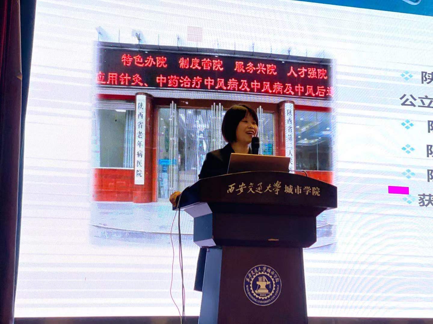 会议伊始,王梅芳代表护理系对与会同学表示热烈欢迎,并隆重介绍了宣讲会主讲人——陕西省第二人民医院护理部主任冯瑞老师。冯瑞老师首先讲述了老年护理的时代背景与现状,接着通过一段视频带领同学们认知省二院作为老年病专科医院的基本概况及服务特色。随后,冯瑞老师对医院的老年护理特色服务体系进行了介绍,并特别指出我省60岁及以上人口和失能老年人对专业的医疗照护服务呈现巨大、刚性的需求;提出老年专科护理建设和专科人才培养是全社会的刚性需求;“1+1”老年护理培训的目标是为满足老年人的健康需求,提供更优质的老年护理服务,造就高水平专科护理人才。