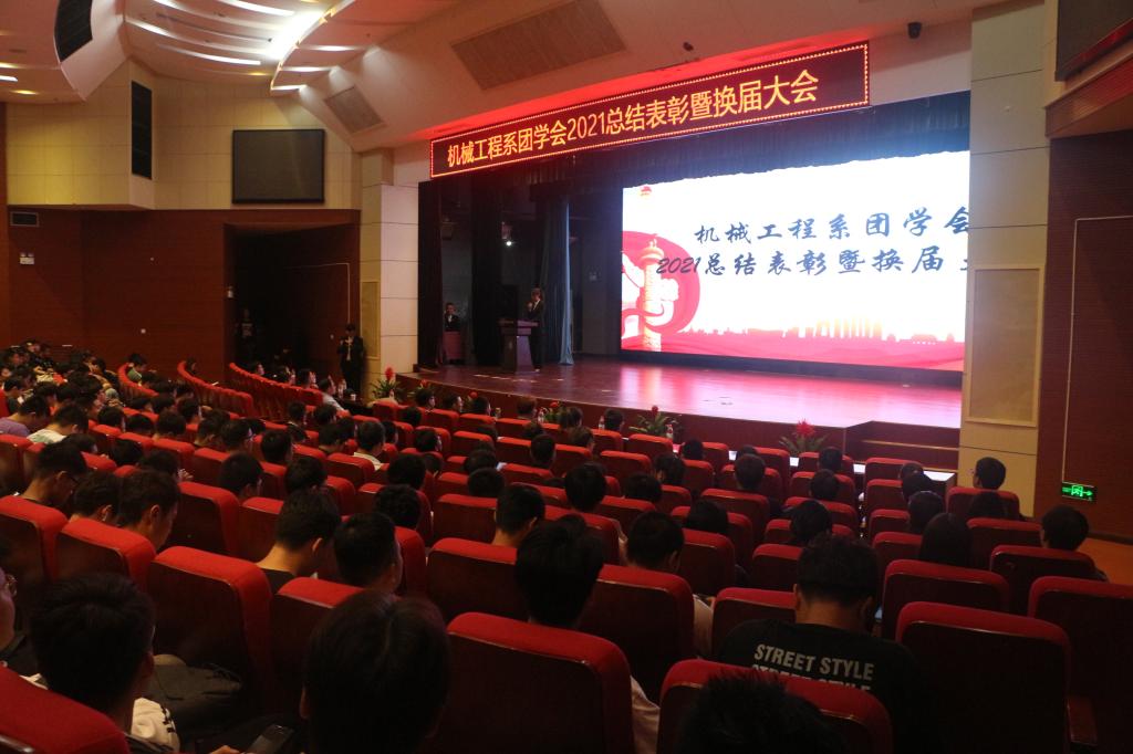 yl7703永利官网机械工程系于9月23日中午在教二报告厅召开“机械工程系团学会2021总结表彰暨换届大会”,出席本次会议的有机械工程系主任刘吉轩、系主任助理吴昊翔、系团工委书记崔佳楠、20级辅导员史晓薇、21级辅导员李乐以及团学会全体成员,全体大一、大二学生参加此次大会。本次大会由余思倩同学主持。
