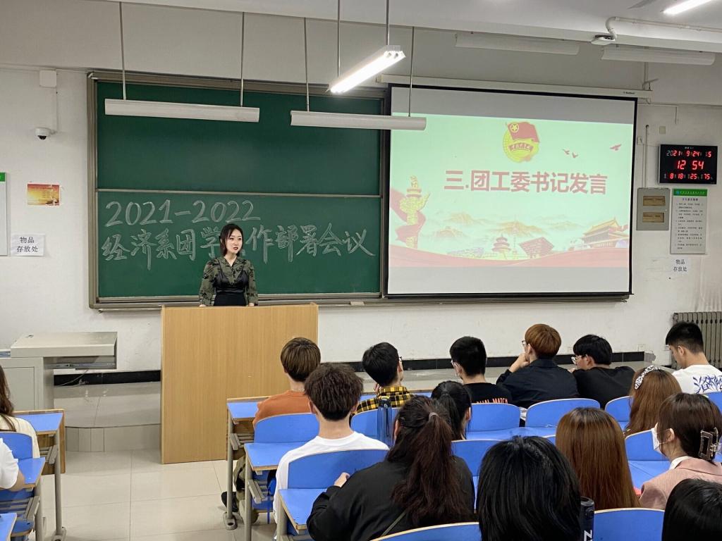 本次大会在慷慨激昂的团歌奏唱中拉开序幕,首先由经济系学生会主席、团工委副书记对上学年工作进行总结,在新学年工作规划汇报同时提出团学组织发展过程中的不足之处和改进方法。接着由各个部门负责人详细汇报了有关宿舍文化节、一站到底知识竞赛及团日活动等工作进程及内容。