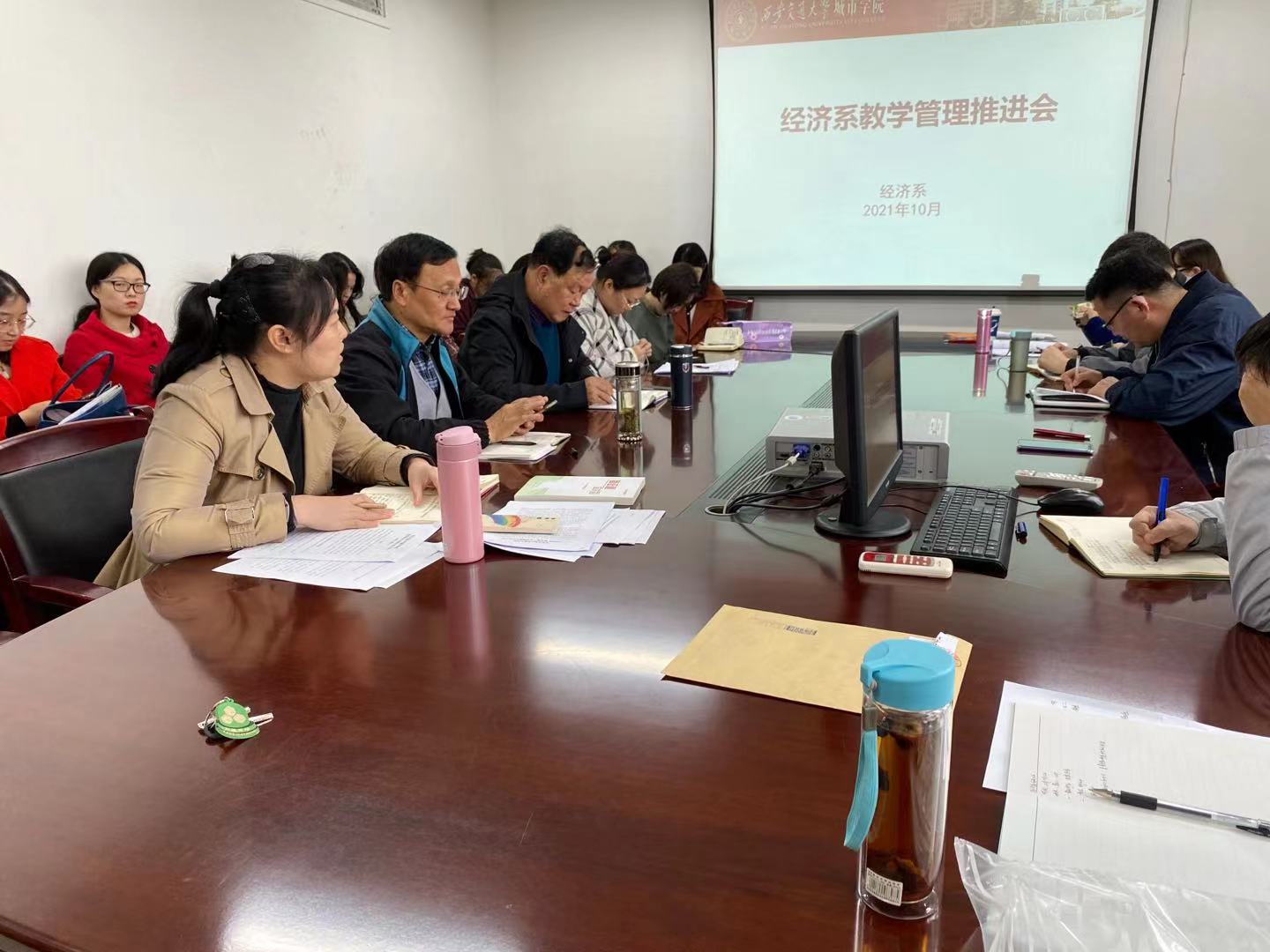 10月14日下午,经济系在教2-225召开教学管理推进会,经济系全体教职员工参加会议,系主任张文科主持会议。
