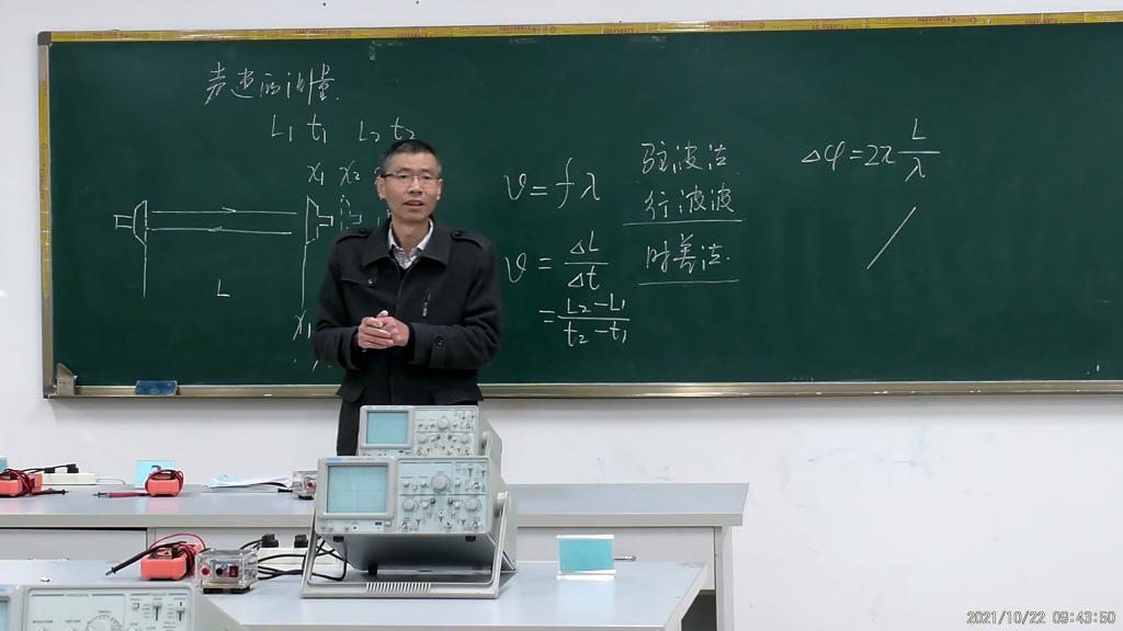马附洲带来霍尔效应实验教学中对启发式教学的探索。马老师结合预习思考题与实际生活对实验进行讲解。随后,梁颖亮老师以声速测量实验为例,对启发式教学进行了探讨。梁老师结合生活实际对声速测量实验涉及的驻波法、行波法、时善法进行了讲解,启发学生进行思考。