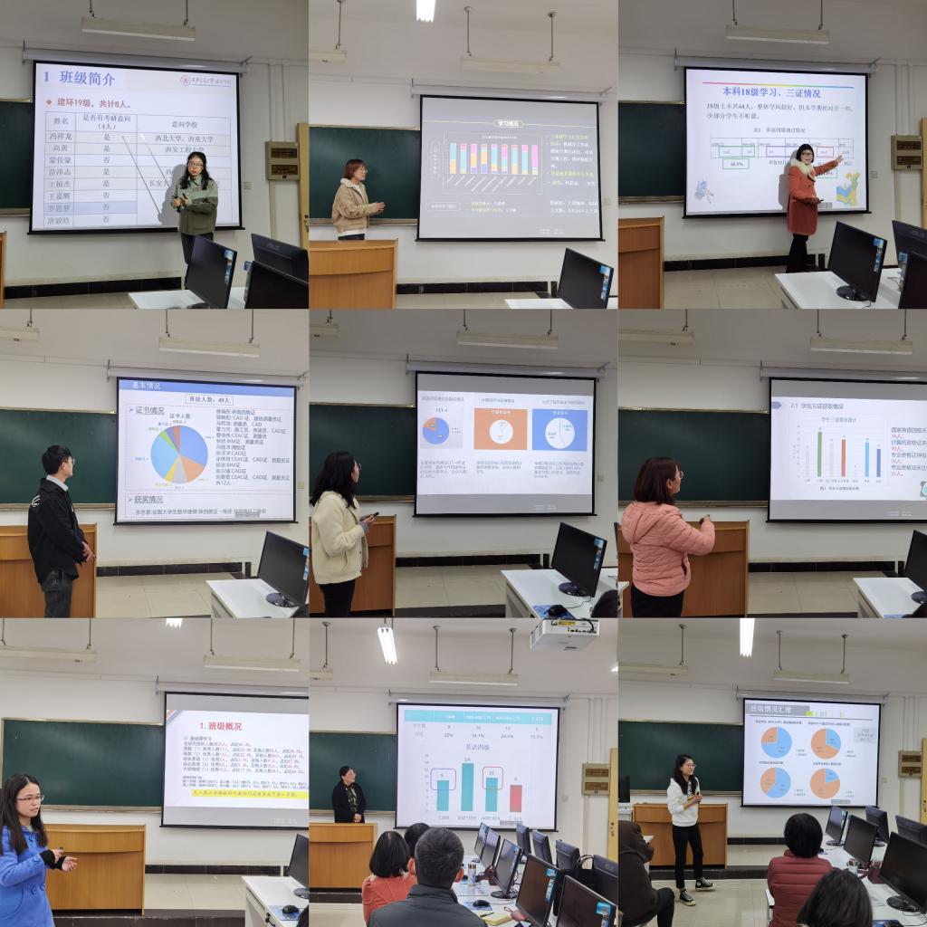 最后系主任廖红建教授对今天各位老师的汇报情况进行点评,充分肯定大家在学生工作中所做的努力,通过PPT汇报可以使大家对所带班级情况有一个更加清晰的分析,有利于各位老师进行班级管理,有助于提高学生成绩,促进土建系教学与学风建设。希望各位老师在今后的工作中再接再厉,创新工作方法,提高工作效果。