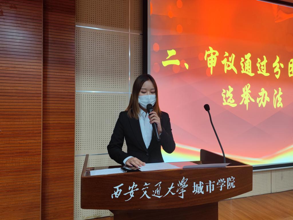 在慷慨激昂的国歌声中,计算机系团员代表和学生代表会议正式开始。会议上,团员代表卓妮娜同学宣读了《审议分团代表选举办法》,在总监票员、监票员的监督和总计票员、计票员的统计下,与会代表以无记名投票的方式,选举产生了由茹静、范文彬等15名同志组成的共青团yl7703永利官网第三次代表大会计算机系分团代表;随后,与会代表以无记名投票的方式,选举产生了由卓妮娜、张嘉怡等19名同学组成的yl7703永利官网第四次学生代表大会计算机系学生代表。