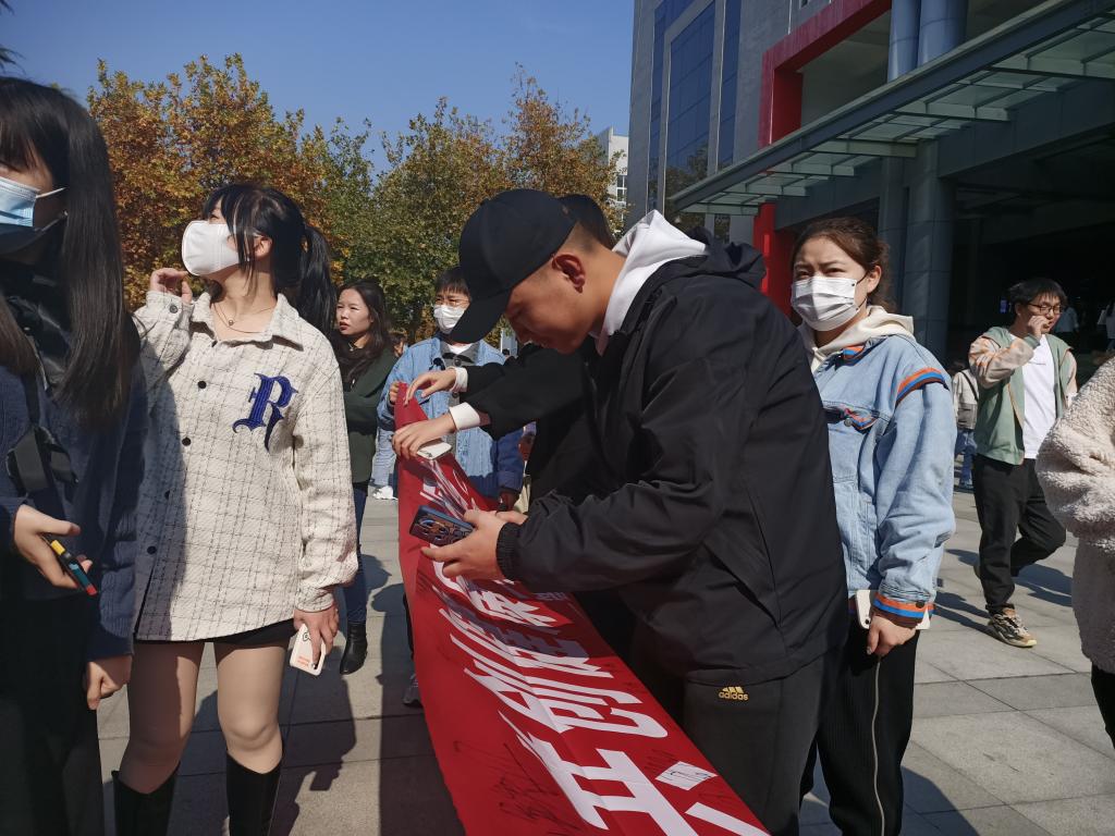 在中快餐厅广场,师生党员共同积极准备此次活动所需的各种资料物品,一切准备就绪后,拉起横幅,轮流值班。向同学们宣传各种戒烟知识并普及吸烟的危害,邀请过往同学参与“人人参与控烟活动,共创健康无烟校园”横幅签名活动,以表禁烟决心!通过学生党员的积极宣传,此次活动得到了老师同学们的积极响应和认可,许多男同学当场表达愿意以身作则,支持戒烟活动。