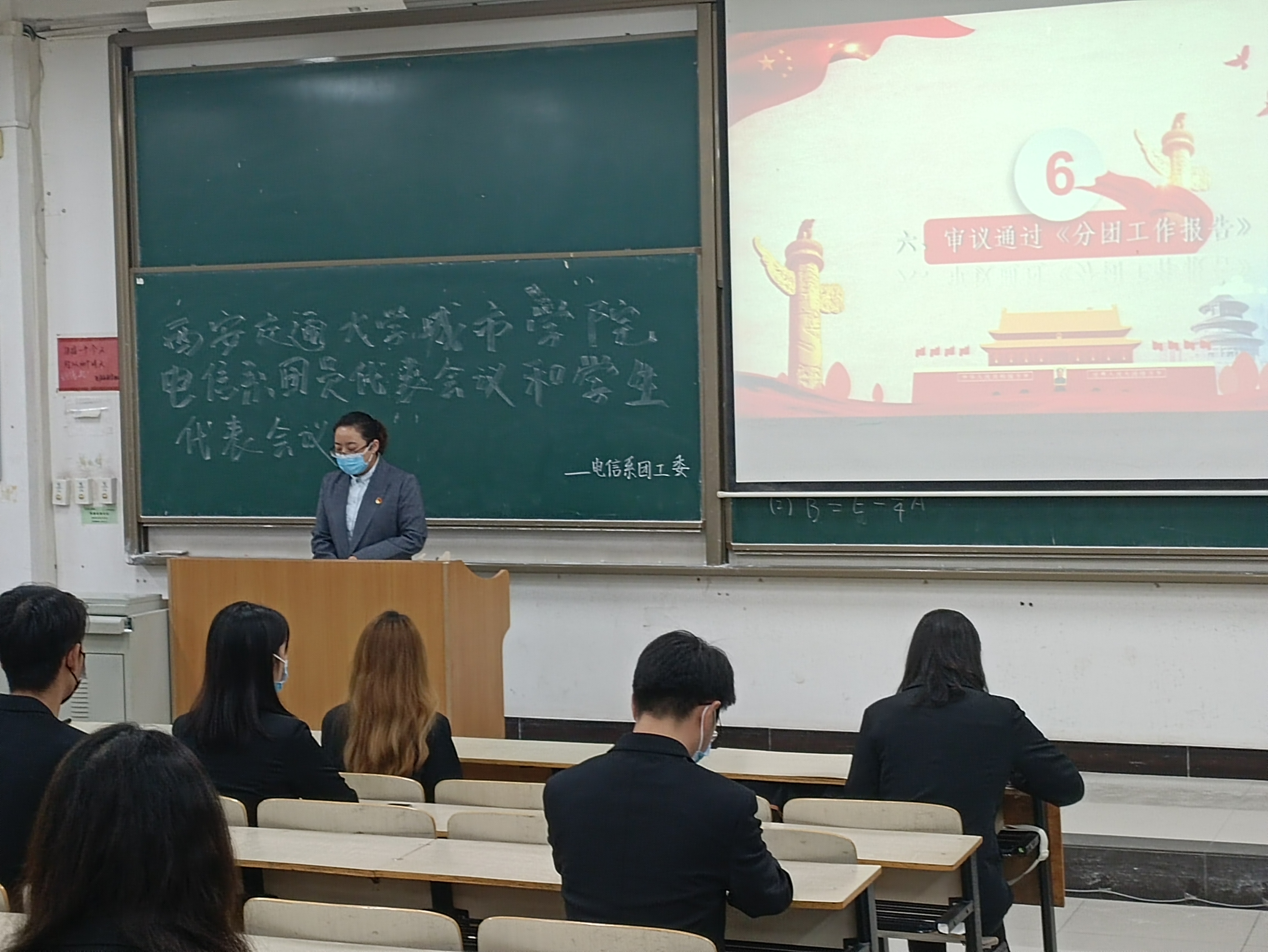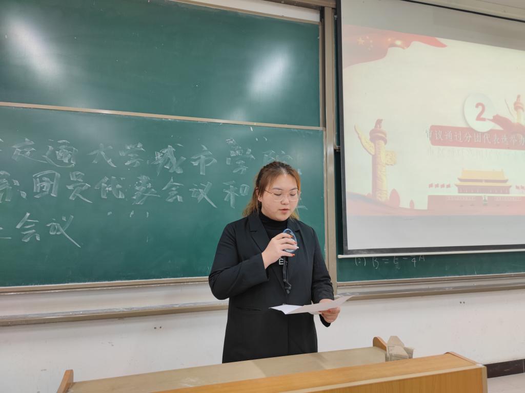 由电信系团工委书记徐娟老师宣读电信系团工委及学生会工作报告。电信系团工委及学生会工作报告经举手表决获得全体参会人员的一致审议通过。紧接着审议通过了,团长徐娟同志、副团长原晨煜同志的建议名单。