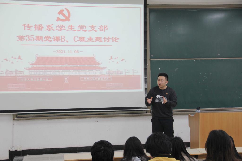为了让同学们更好地理解新时代青年的责任与担当,培养担当民族伟大复兴大任的时代新人,传播系学生党支部于11月5日中午在E200、F200召开了主题讨论会,传播系学生党支部书记杨耀聪、辅导员任瑾、传播系第35期入党积极分子、发展对象参与本次讨论会,本次讨论会由学生党员廖欣坤、翟子越主持。