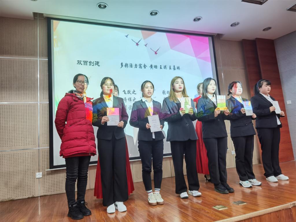 集体分享环节由护理系1#212宿舍、1#210宿舍、3#319宿舍分别从校外实践、校内学习生活、学科竞赛、宿舍成员风采等方面展示了她们丰富精彩的大学生活,为护理系各年级学生树立了榜样。