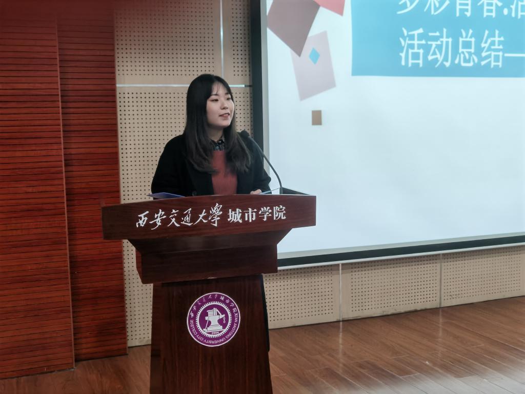 随后,护理系学工办游晨阳子总结了护理系参加此次活动试点所取得的成果,肯定了同学们参与活动的积极性,对第一届活动进行了总结和分享,并对获奖同学代表进行表彰与颁奖,且对第二届“多彩青春,活力校园”活动发出号召。
