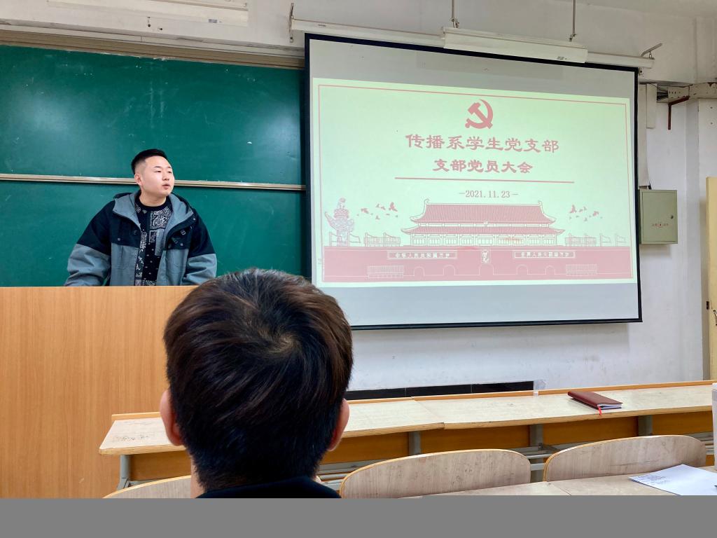为更好地激发党员的读书热情,加强党员之间的学习交流,提高党员的党性修养,强化党员终身学习的意识,11月23日,传播系学生党支部于教学楼D107开展以“党史学习,我先行”为主题的读书分享会。传播系学生党支部书记杨耀聪、辅导员任瑾以及全体学生党员参加此次分享会。