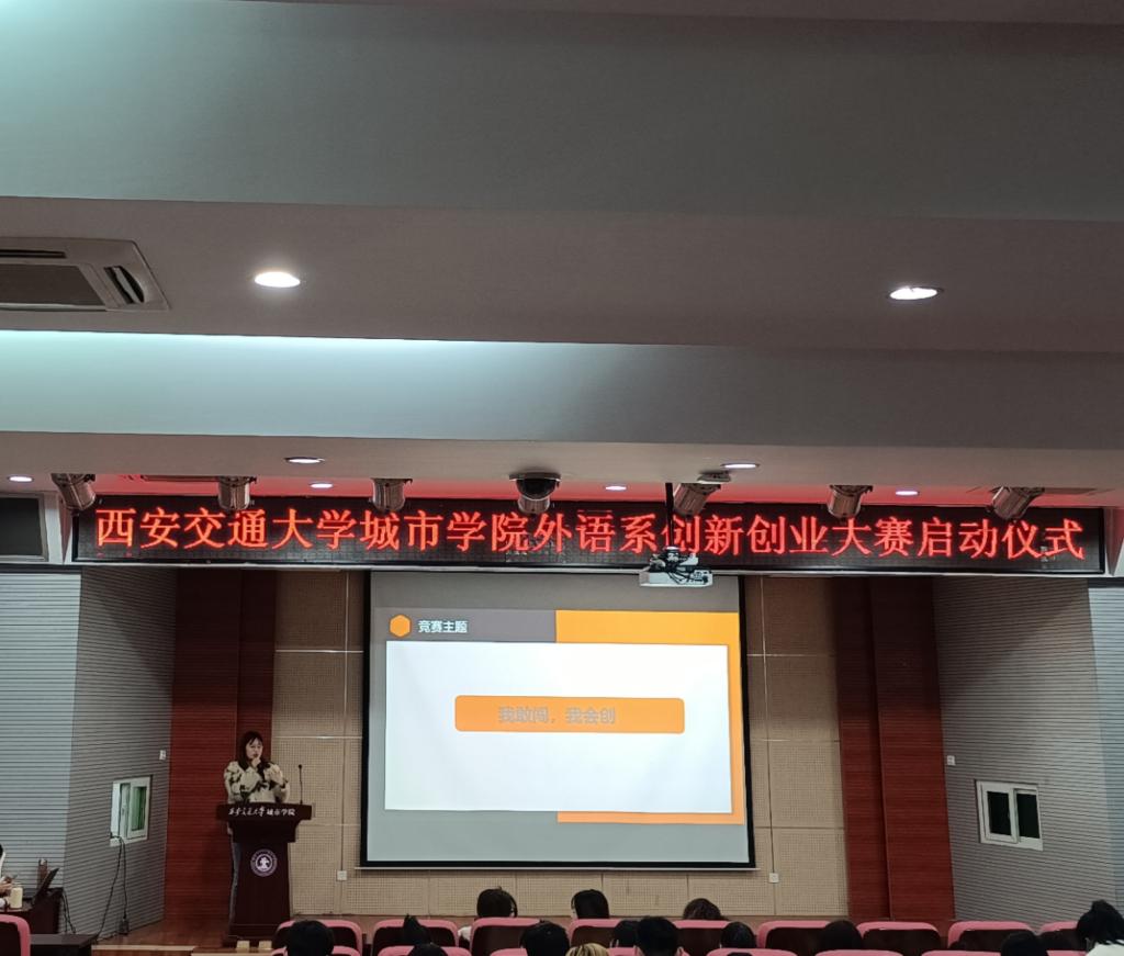 为进一步激发大学生创新创业热情,提高大学生创意、创新、创造、创业的意识和能力,引导、鼓励广大学生踊跃参加创新创业活动,真正落实教育部以赛促教、以赛促学、以赛促创要求,外语系于12月1日在F100举行创新创业大赛启动仪式。本次大会由外语系团工委书记刘牧原、外语系创新创业负责人韩蓉发起,英语教研室付渝、外语系主席团陈欣乐、郗悦靓、杨雪等学生代表共同主持,参会人员为2020、2021级全体学生。