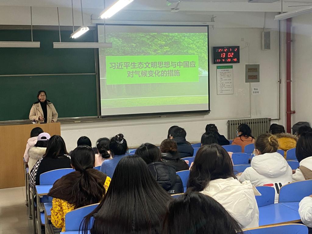 梁晓菲以《习近平生态文明思想与中国应对气候变化的措施》为题,强调了十九届六中全会的重要地位、历史意义,并深入解读了习近平生态文明思想及生态文明建设的核心要义和丰富内涵。报告中梁老师通过数据、图片资料的形象展示,分别介绍了我国近百年来的气候变化、气候变化的原因、全球气候变化带来的影响、气候变化的适应对策等。让在座的党员同志有了深刻的感悟和体会。报告结束时,梁老师与部分党员同志交流了所感所思。