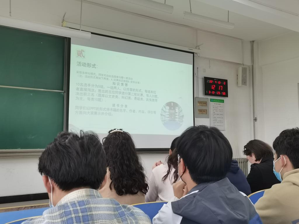 团工委书记蒋美一帆总结讲话,她希望同学们积极参加,博览群书,丰富阅历,学以致用,立志成才。至此本次书香四溢,阅读经典活动正式拉开序幕。