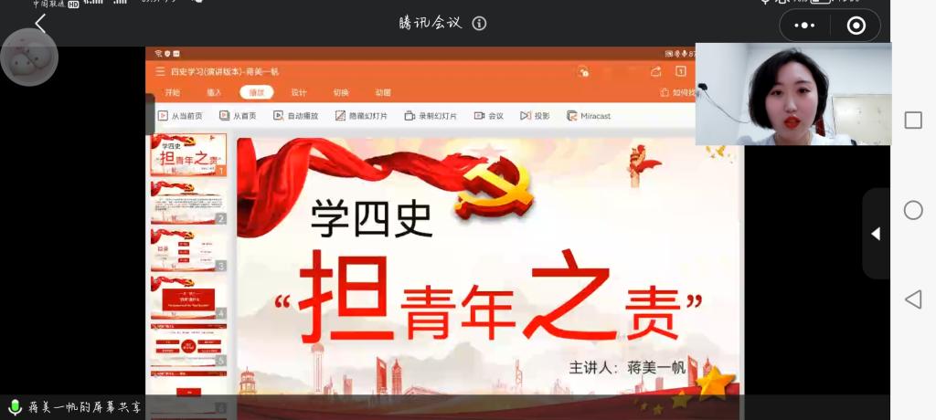 “青马工程”第一讲由经济系党支部书记廉宇婷围绕新时代团干部的责任与担当展开。经济系团工委书记蒋美一帆以“学习四史”为主题作为本次“青马工程”第二讲。宣讲团谢雅昭借李大钊先生的生平事迹展开了“青马工程”第三讲。
