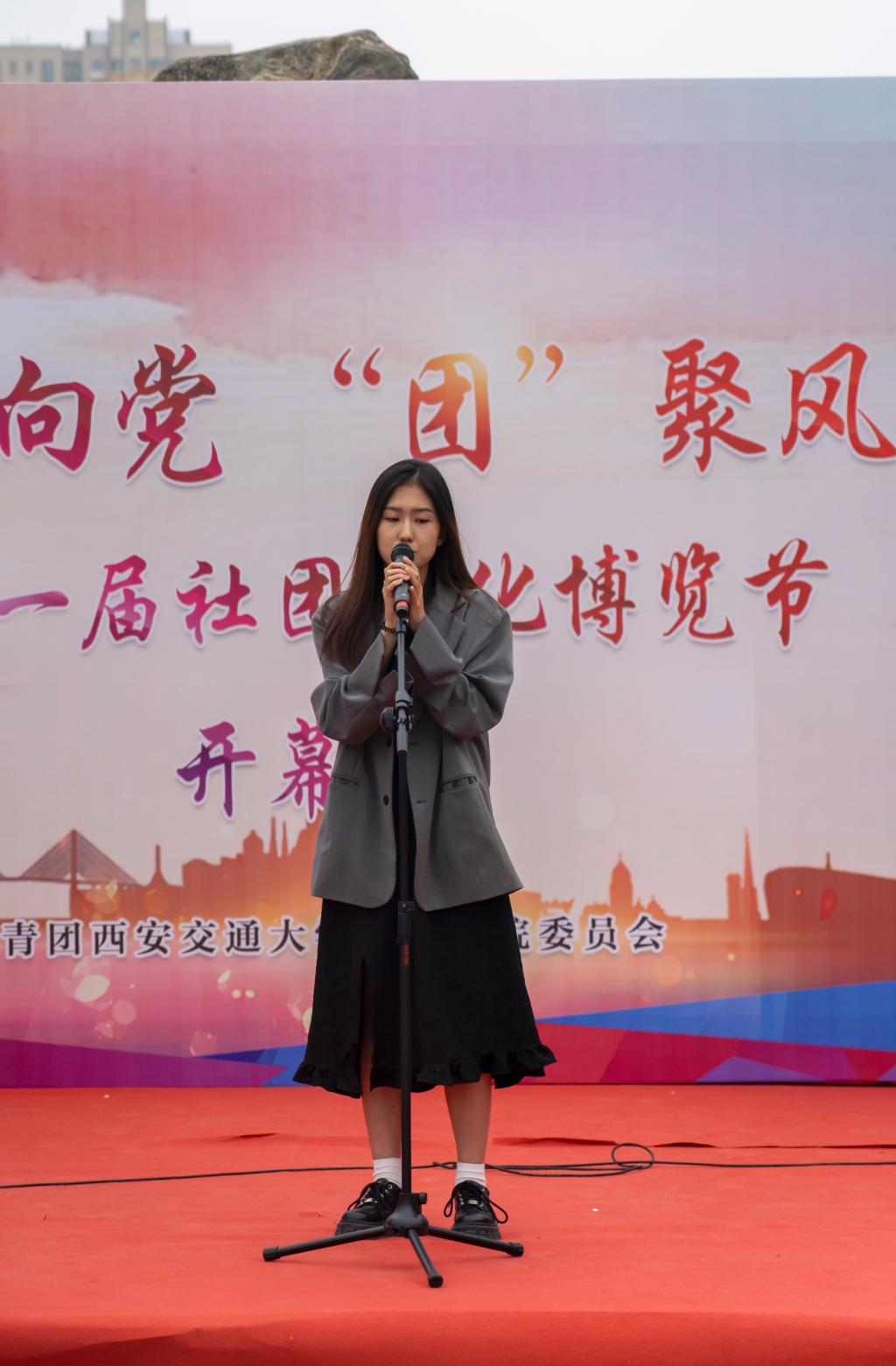 活动伊始,全体起立,奏唱团歌。随后,由学院团委社团工作部指导老师崔佳楠介绍了本届社团文化博览节的活动安排,并希望通过本届社团文化博览节能为广大学生提供更大的展示平台,帮助学生丰富文化生活,培养和提高学生的文化品位和艺术修养。