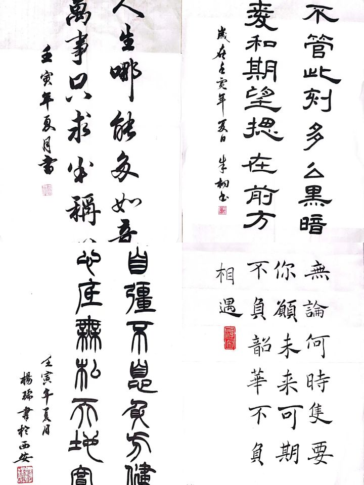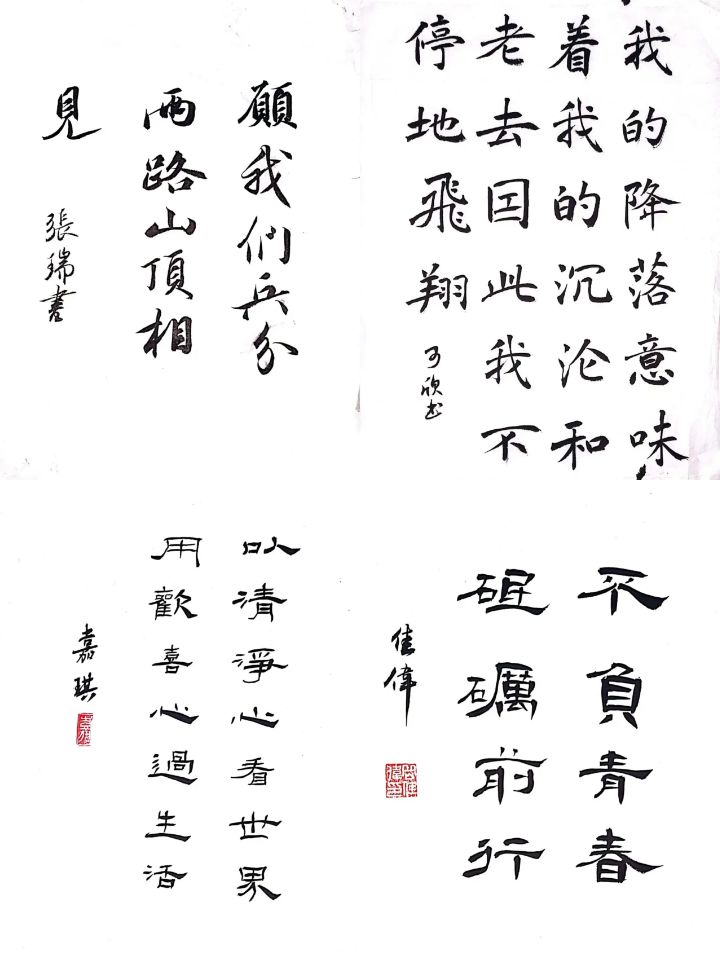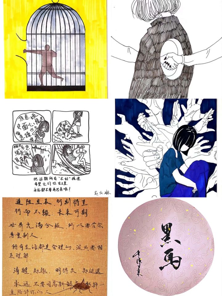 在本期的我手“绘”我心环节,同学们积极踊跃用自己手中的笔,抄录、书写经典或者与心理学有关的名句。经过月前布置和收集,共收不同尺寸的书画作品100余件,征求同学意见后线上展出54件。书写内容或表达当下情绪或激人奋起或抚平焦虑或安于当下或释怀坦荡等等。此外,环境设计和视觉传达设计的部分同学也利用所长,旧口罩设计新花样,表达新创意——“疫”路同行,“罩”顾我心,用丰富多彩的方式为“心”赋能。