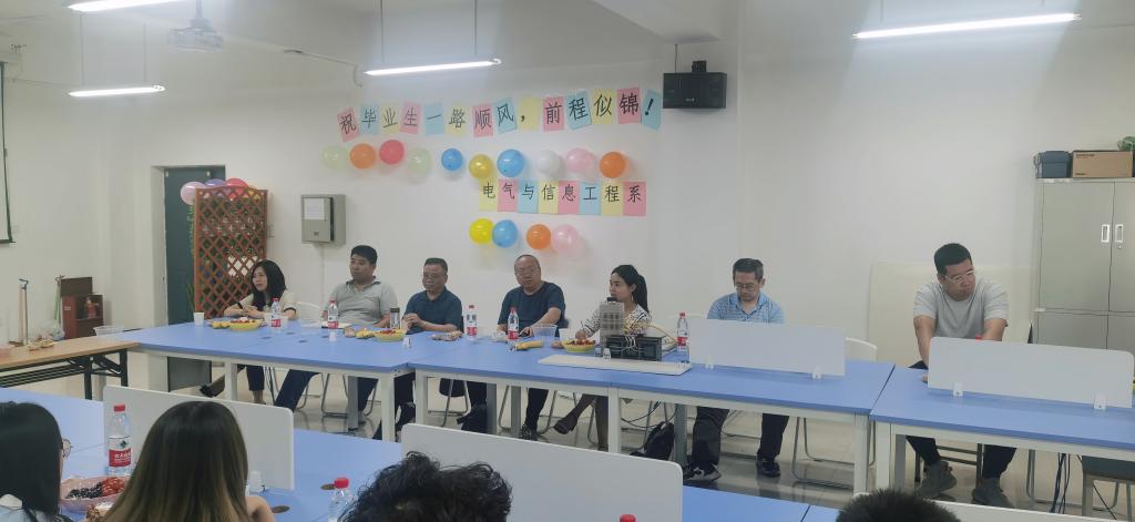 为增强2022届毕业生对母校的感恩情怀,通过与毕业生交流反馈总结教学、管理经验进一步加强系部及专业建设,6月8日下午,电气与信息工程系在实验楼511召开2022届毕业生座谈会,本次座谈会分专业进行了两场,电信系主任赵录怀、副主任冯恩信、副主任刘晓明、主任助理兼实验室主任张永超、主任助理张建、党支部书记谭亚丽、办公室主任潘雪柳、学工负责人王姣、电气专业负责人李守智,电信专业负责人何修富、中兴通讯企业教师张成及毕业班辅导员及部分教师、毕业生代表参加了本次会议,会议分别由张建、刘晓明主持。