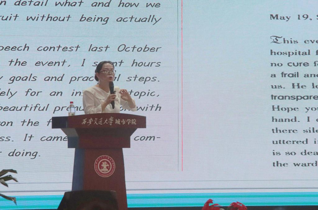 王老师向同学们提出“先题后文”和“先文后题”两种答题方式,并告诫同学们要将题干所给信息在文中找出其准确定位,跳出“想太多”的误区。最后,王佩老师在翻译部分为同学们提供建议,她指出翻译最难的不是词汇,而是意思的匹配程度,在翻译环节想取得高分要格外注意语序是否正确和语法是否有误。