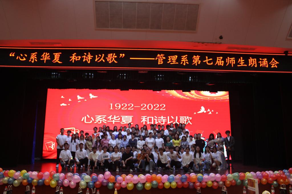 管理系于6月14日晚在教二报告厅举办“心系华夏,和诗以歌”第七届师生朗诵会。莅临本次朗诵会的领导及嘉宾老师有:学院团委黎杨、护理系团工委书记张妙涵、经济系团工委书记蒋美一帆、机械系团工委书记李乐、电信系团工委书记徐娟、艺术系团工委书记杨梦圆、管理系副主任解茹玉、管理系主任助理刘健、管理系团工委书记吴江菊、管理系全体学工办老师及教师代表。本次朗诵会由罗荣泽和陈旭同学主持,并首次使用直播,开启了线上线下同步的新形式。