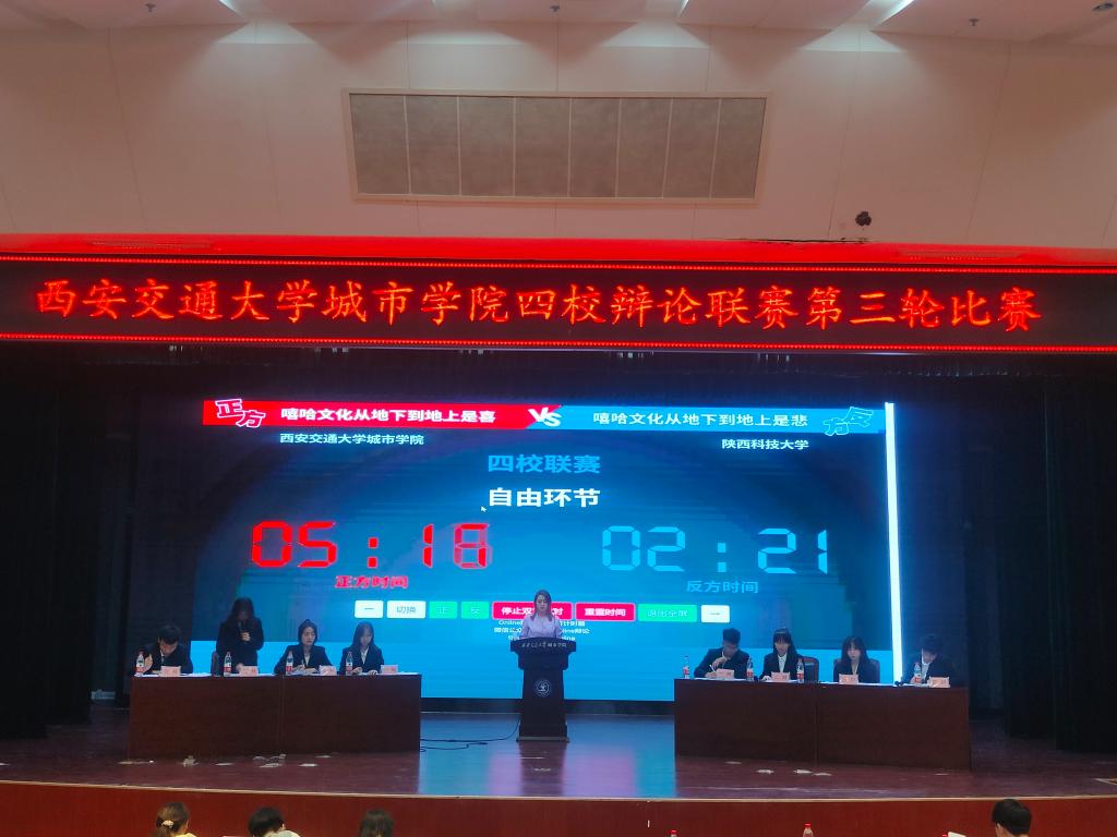 为加强校弈术辩论文化协会与其他院校辩论队的沟通,提升辩论队专业水平,丰富校园文化生活,6月19日yl7703永利官网弈术辩论文化协会特组织邀请与长安大学辩论队、西北农林科技大学辩论队与陕西科技大学辩论队共同举办四校联赛,活动在教二报告厅进行。本次比赛的辩题是:嘻哈文化从地下到地上是喜/悲。