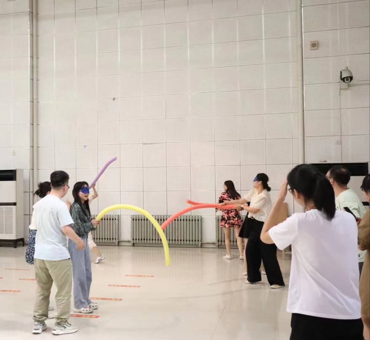 接下来,姚老师向大家介绍了本次团辅的目的意义、安排及流程。在“桃花朵朵开”的暖场环节中,现场气氛逐渐活跃,各位老师积极投入。随后,活动分组进行,以达到更好的团辅效果。心理健康教育中心专职老师陈志敏和兼职老师杨梦圆分别带队,开展了“答非所问”“不倒森林”“珠行万里”“蒙眼大作战”等系列团体活动。最后,伴随着舒缓的音乐及指导语,陈志敏老师组织大家进行了腹式呼吸放松训练,让大家感受身心放松的状态,帮助调节自我压力和焦虑。