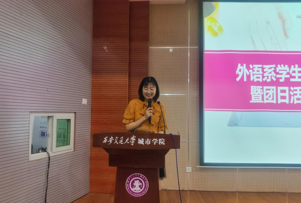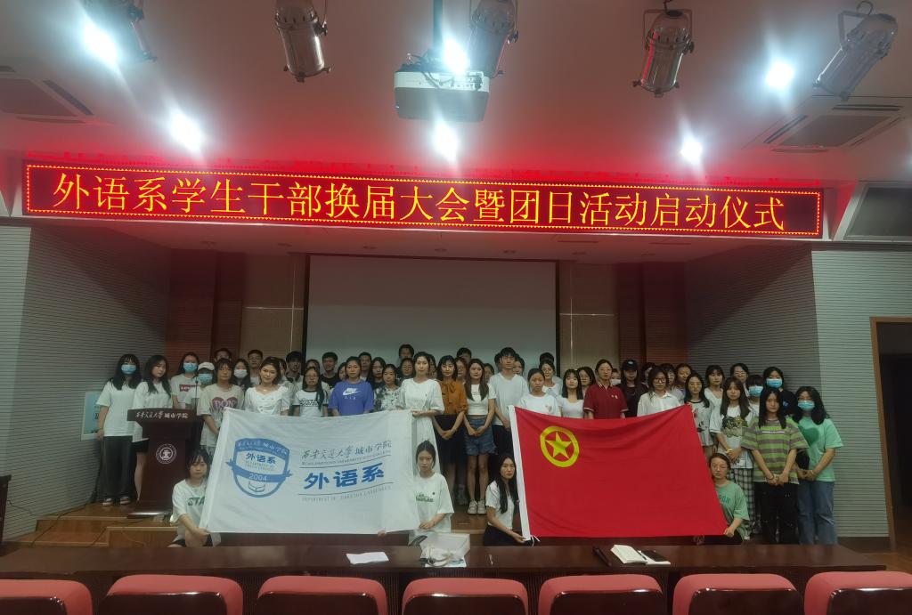 外语系于6月28日在F100召开学生干部换届大会暨团日活动启动仪式。会议伊始,现任学生会主席陈欣乐代表发言,就外语系本学年工作开展情况、团学组织存在问题及改进措施进行汇报。随后,韩蓉老师传达本次团日活动的精神,动员各团支部围绕主题积极开展形式多样的团日活动。最后关老师进行总结发言,她肯定了学生会做出的努力和贡献,要求学生会成员明确职责、严格自律,充分发挥学生会联系学校和同学间的桥梁纽带作用,全心全意为广大师生服务。