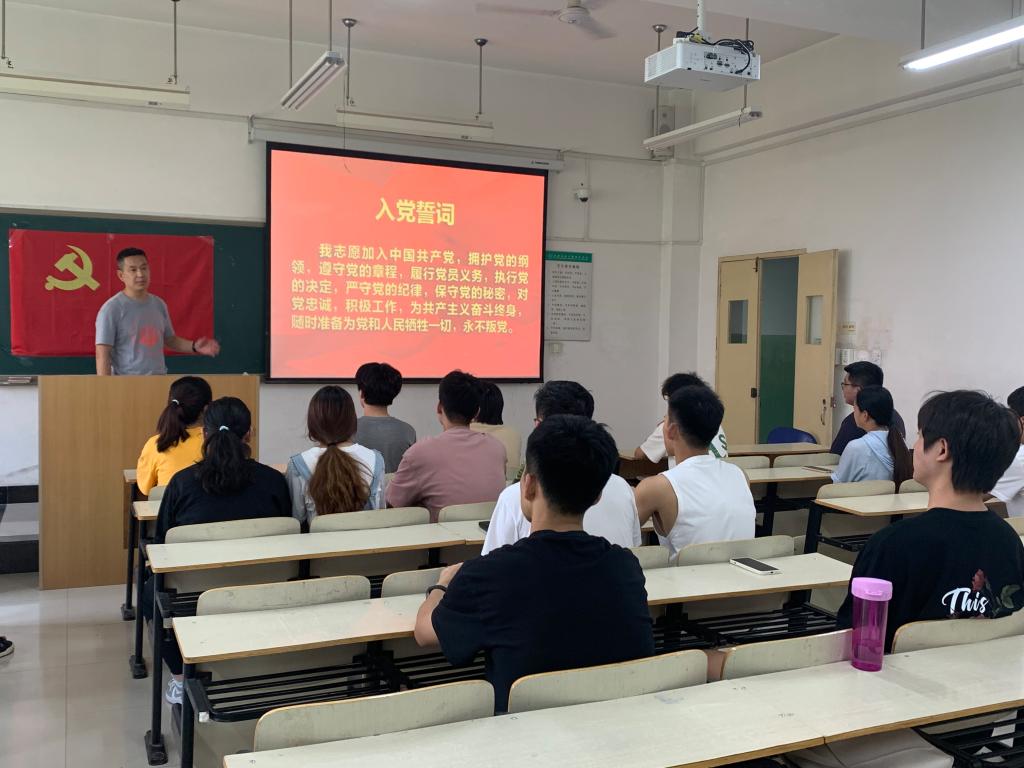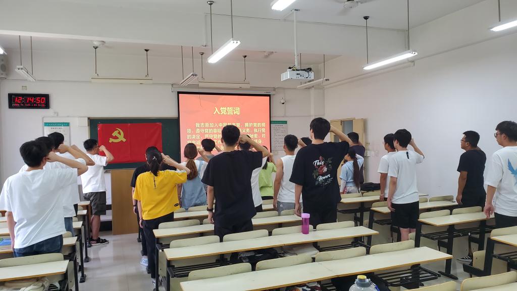 7月1日上午,土木建筑工程系学生党支部在A304举行重温入党誓词活动。