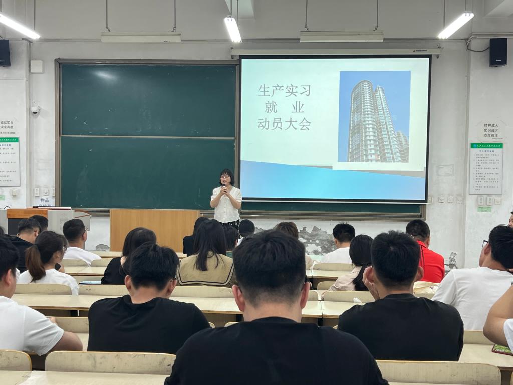 6月30日,土建系在教学楼A100向参加生产实习的全体学生召开实习动员大会和安全教育大会。土建系郭秀芹老师强调了生产实习的重要性,讲解了生产实习的时间安排,指导教师安排,实习单位情况,自主实习的单位选择,实习要完成的任务和实习的考核标准等。