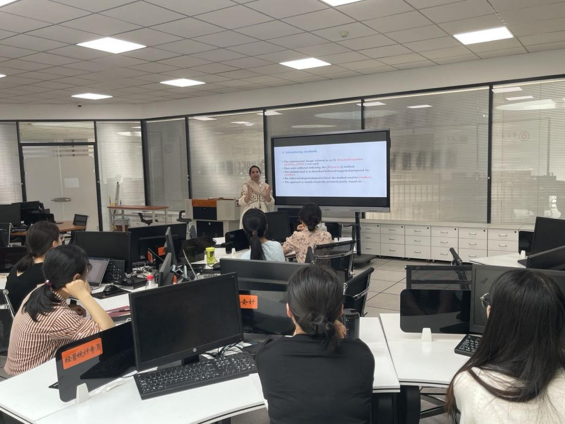 为进一步提高管理系青年教师学术论文写作水平,管理系开展了第八期科研沙龙活动。沙龙以“SSCI论文的写作与发表”为主题、上下两期,分别于6月21日及7月5日下午在教2-200举办。本次沙龙邀请管理系博士Nosheena Yasir主讲,管理系副主任解茹玉主持,十余名青年教师参加了沙龙。
