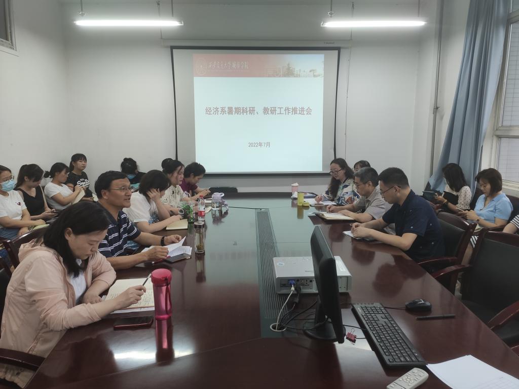 7月13日下午,经济系在经管楼二楼会议室召开暑期科研、教研工作推进会。会议由经济系副主任杨健全主持,经济系全体教职工参加了本次会议。