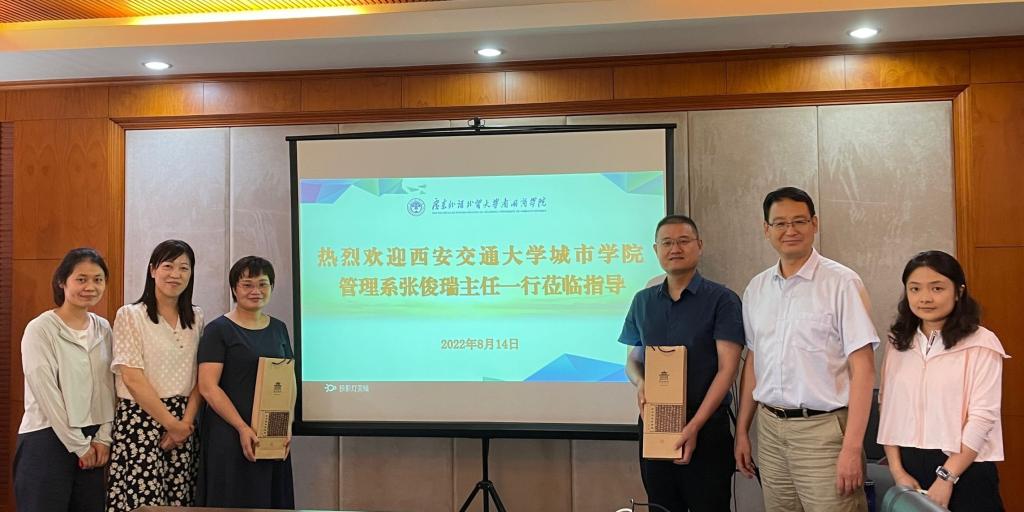 为进一步推进会计学专业国家级一流本科专业建设,不断加强专业内涵建设,8月14日-16日,西安交大城市学院管理系主任张俊瑞一行4人赴广东外语外贸大学南国商学院、广州新华学院、广州南方学院,就会计学国家一流专业建设的思路、规划与成果开展调研。管理系主任张俊瑞、副主任解茹玉、会计学专业负责人屈雯、财务管理专业负责人吉玖男参加了调研活动。