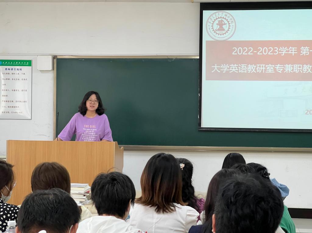9月1日上午,yl7703永利官网外语系在教学楼B319教室召开大学英语教研室专兼职教师教学会议,外语系副主任兼大英教研室主任巫奕君副教授主持会议,外语系全体专兼职老师共计40余人参加了此次会议。