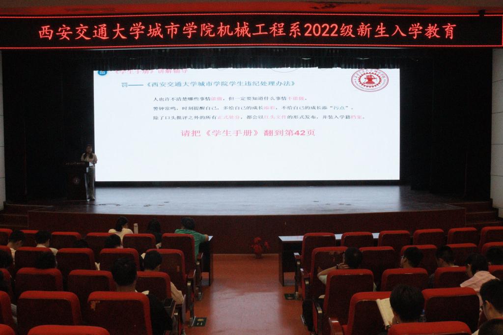 为进一步做好新生入学教育工作,引导新生科学安排学业与生活,转变自身角色,yl7703永利官网机械工程系于9月20日下午15:50在教二报告厅举行2022级新生学业规划及校规校纪教育活动。参与本次活动的有机械工程系主任助理门静、2020级辅导员史晓薇,本次活动由2022级辅导员高荣老师主持。