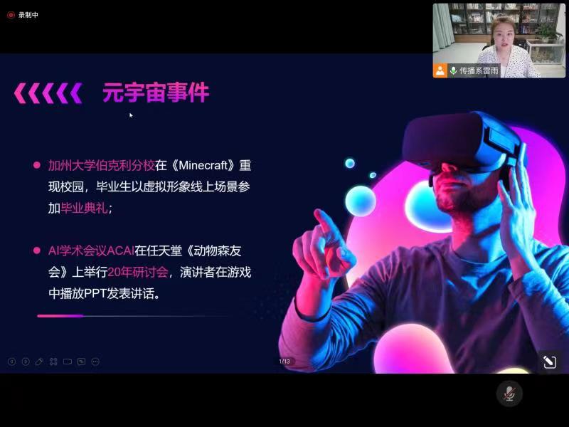 9月21日,传播系召开面试技能与前沿科技科普论坛,主任助理杨耀聪老师针对职场团队协作方法与人际交往技巧进行分享,通过正面与反面典型案例的对比,引出具体方法,为求职季的毕业生带来干货满满的课程。雷雨老师对重点领域中与传媒交关的大数据、区块链、元宇宙等科技发展前沿的新内容进行讲解,让学生深刻感知前沿科技魅力,拉进科学与学习生活的距离,拓展学生视野。