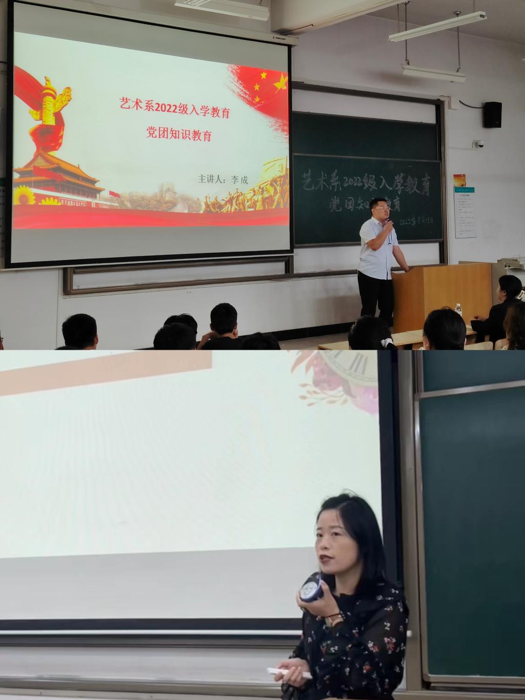 9月15日至18日,由艺术系学生工作负责人李成老师和艺术系团工委书记杨梦圆老师做党团知识教育讲座。李老师从端正入党动机、入党的具体流程、如何成为一名合格的共产党员和学生党支部活动开展等方面进行了细致的讲解。并号召同学们积极向党组织靠拢,也为新生们早日加入党组织的目标指明了方向。杨老师强调了新时代青年的使命和担当;介绍艺术系每年每月重点开展的团学活动,鼓励同学们在大学生活中积极参与第二课堂活动,提升自己的心理韧性,争做“有理想、有担当、不保守、肯付出”的优秀团员青年。